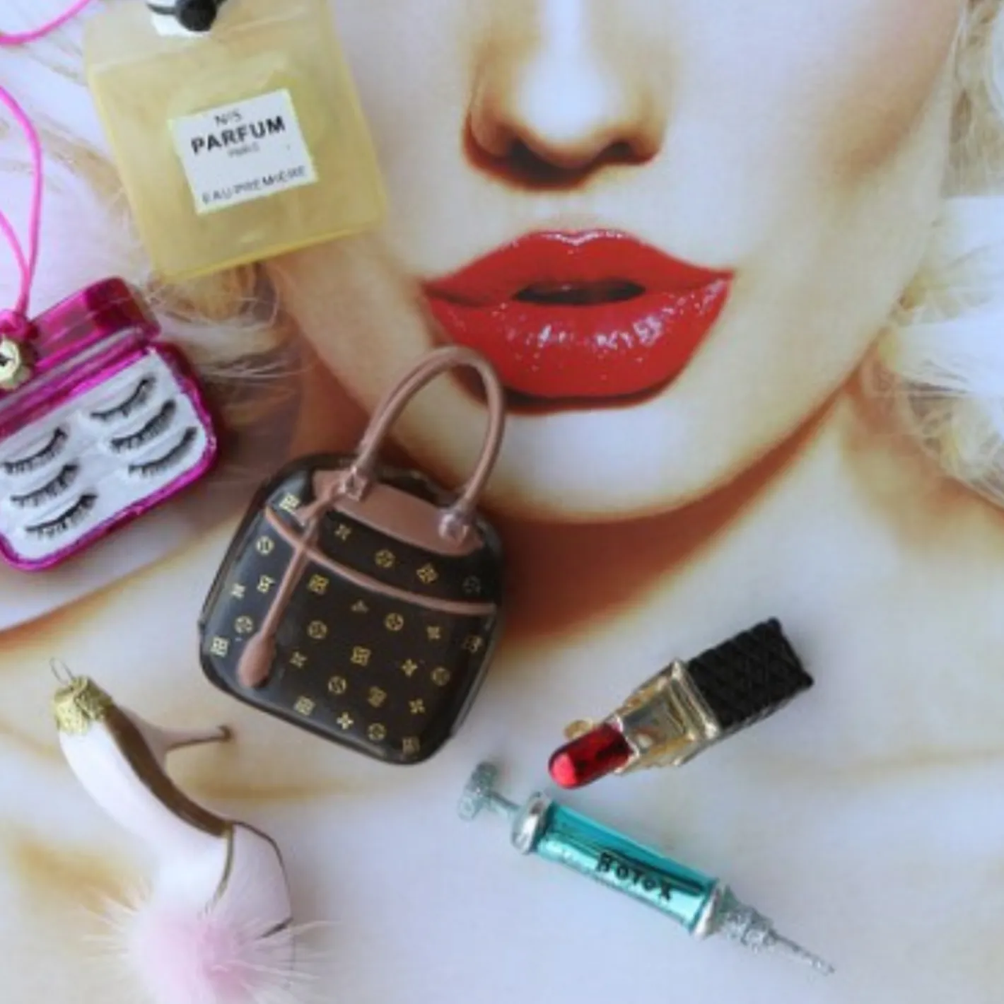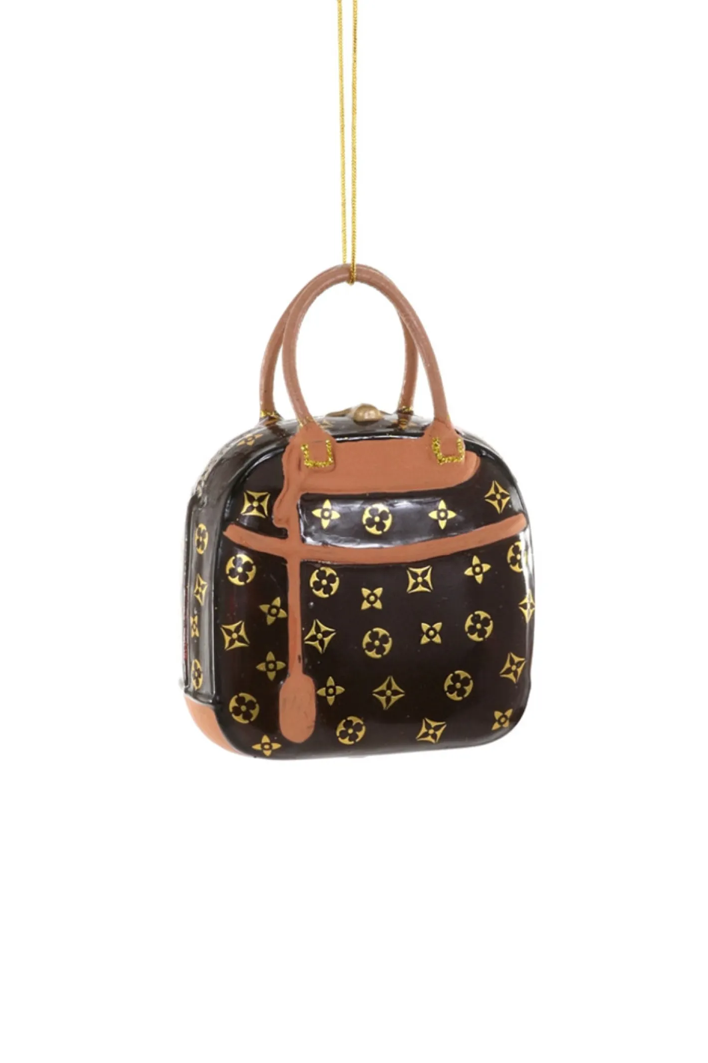 Got someone who’s a lil boujee on your Christmas list?? Look no further- we have the perfect gift! This ornament features a brown hand bag with lighter brown straps and accents. Allover the bag is a tiny golden pattern and gold glitter buckles! Made by Cody Foster. Made of glass. Dimensions: 3″L x 1.75″W x 4″H.
