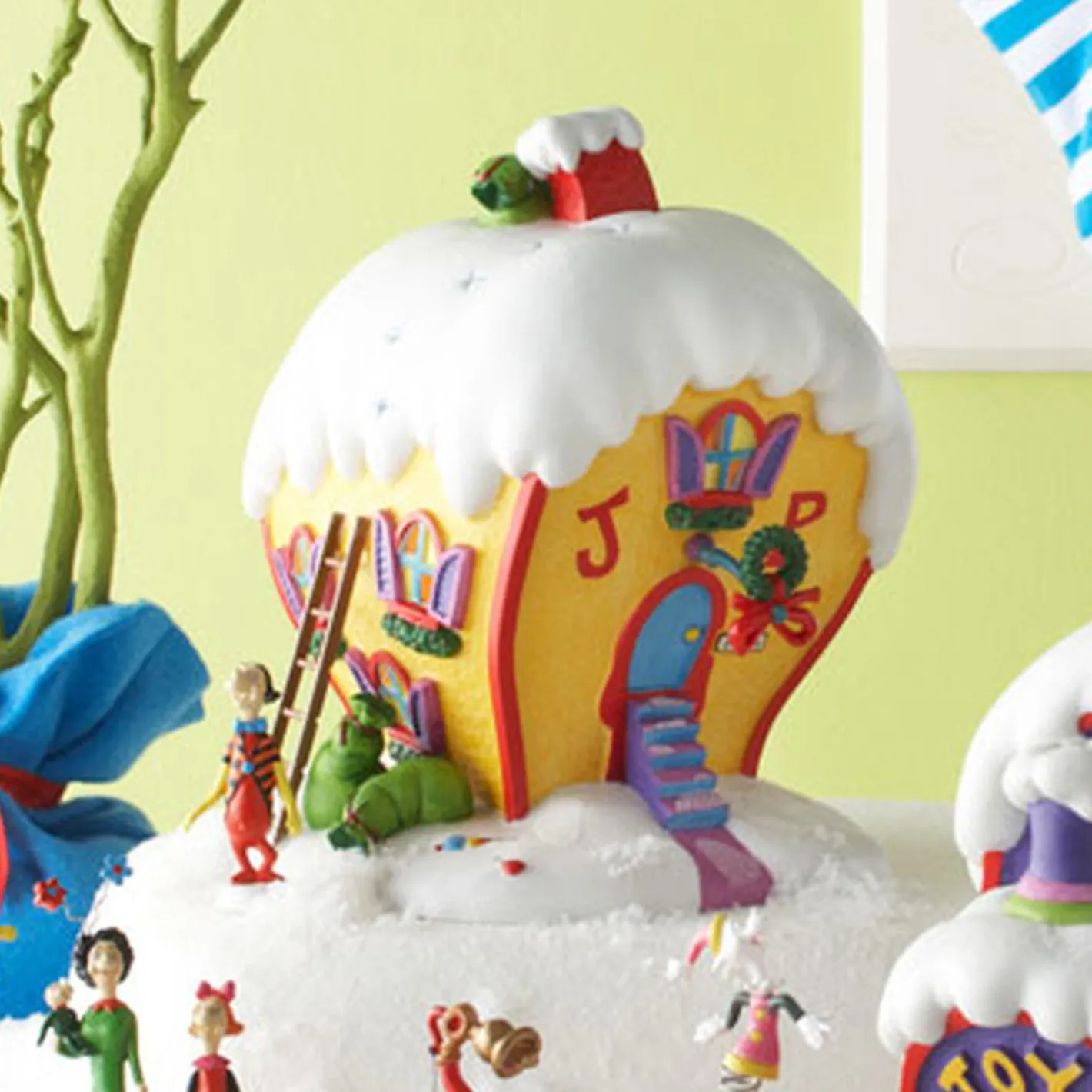 We all know and love the story of how the grouchy Grinch’s heart grew three sizes because of a little girl who loved Christmas so much- Cindy-Lou Who. This wonderful Grinch Village Cindy-Lou Who’s House Building brings the whole entire story to life! Add it to your existing village, the house is bright yellow and has bags piled on the side and coming out of the chimney as the Grinch steals all of their Christmas presents! Made by Department 56.Â
