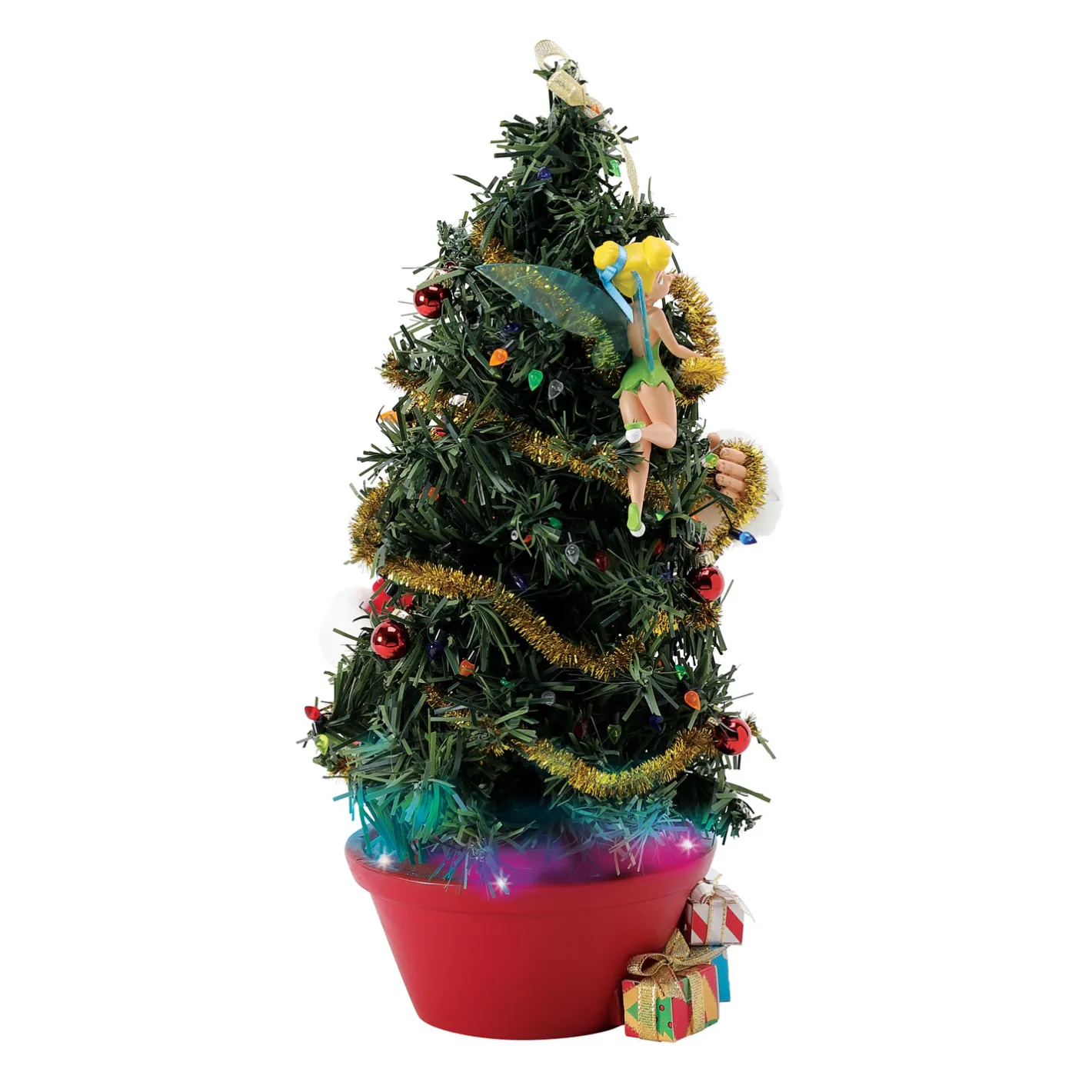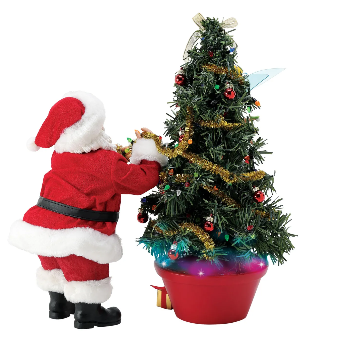 All it takes is faith, trust, and a little bit of pixie dust to bring the magic of Christmas to life! This enchanting Possible Dreams figure features Santa in his classic red suit, standing beside a beautifully decorated tree adorned with colorful bulbs and ornaments. At the heart of the magic, Tinker Bell twirls gracefully around the tree, wrapping it in shimmering gold tinsel garland. As the tree slowly turns with Tinker Bell, it creates a captivating, animated display that adds a whimsical Disney touch to your holiday décor! Battery Operated 3-AAA Required- not included. Introduced January 2025. Made by Department 56. Made of PVC, LED, Polyester, Clothtique. Dimensions: 12in H x 6.75in W x 12in L.Â