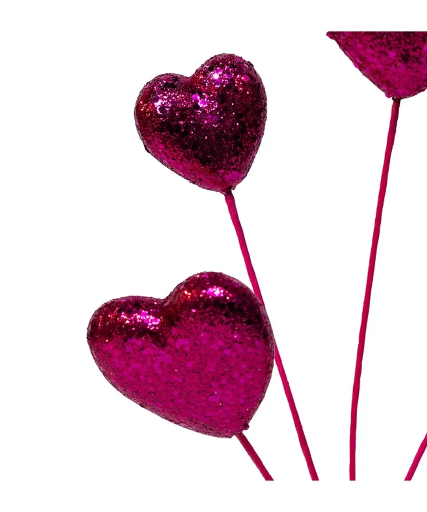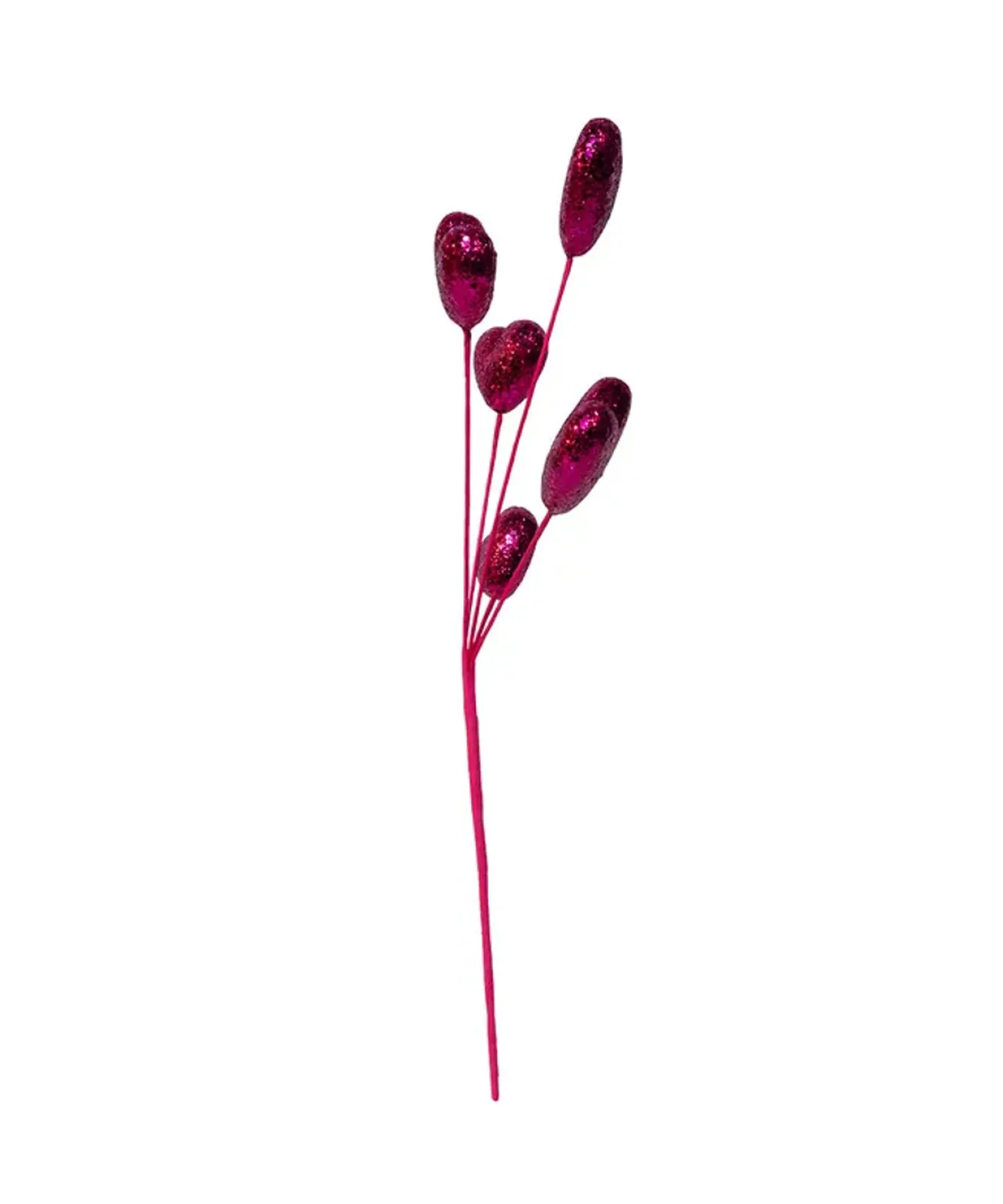 Add a little love to your Christmas tree with this adorable spray! It features bold and bright pink glittered hearts on a pink paper covered wire! Perfect to use in any pink themed trees or for Valentines Day Decor! Made by Kurt Adler. Made of polyester, paper, and iron. Dimensions: 19″.