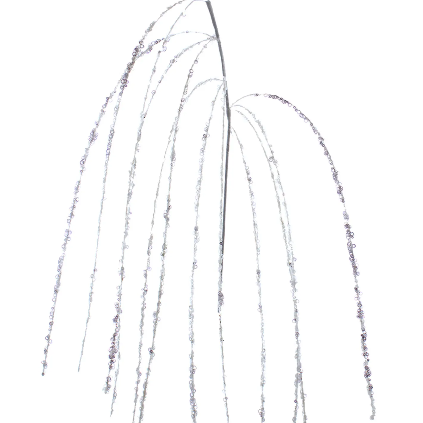 Decorate your tree with this gorgeous spray! It features cascading branches covered in sparkling sequins! Perfect to put in trees, wreaths, or even garlands! Made by Kurt Adler. Made of polyester and iron. Dimensions: 4′.