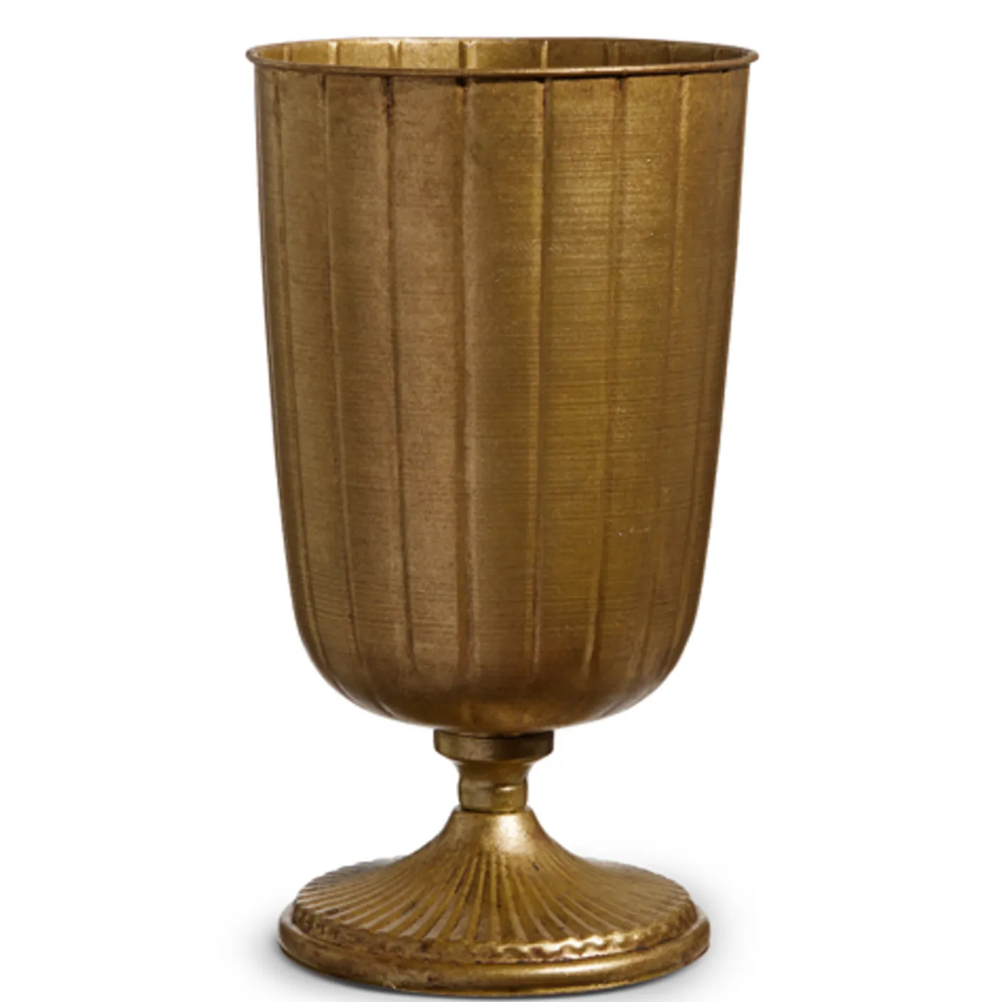 Add a cozy vibe with this gorgeous large golden metal vase! It has a unique antiqued tone to the gold and would look great filled with your favorite florals and greenery! Made by Raz Imports. Made of iron. Dimensions: 6.5″ D X 12″ H.