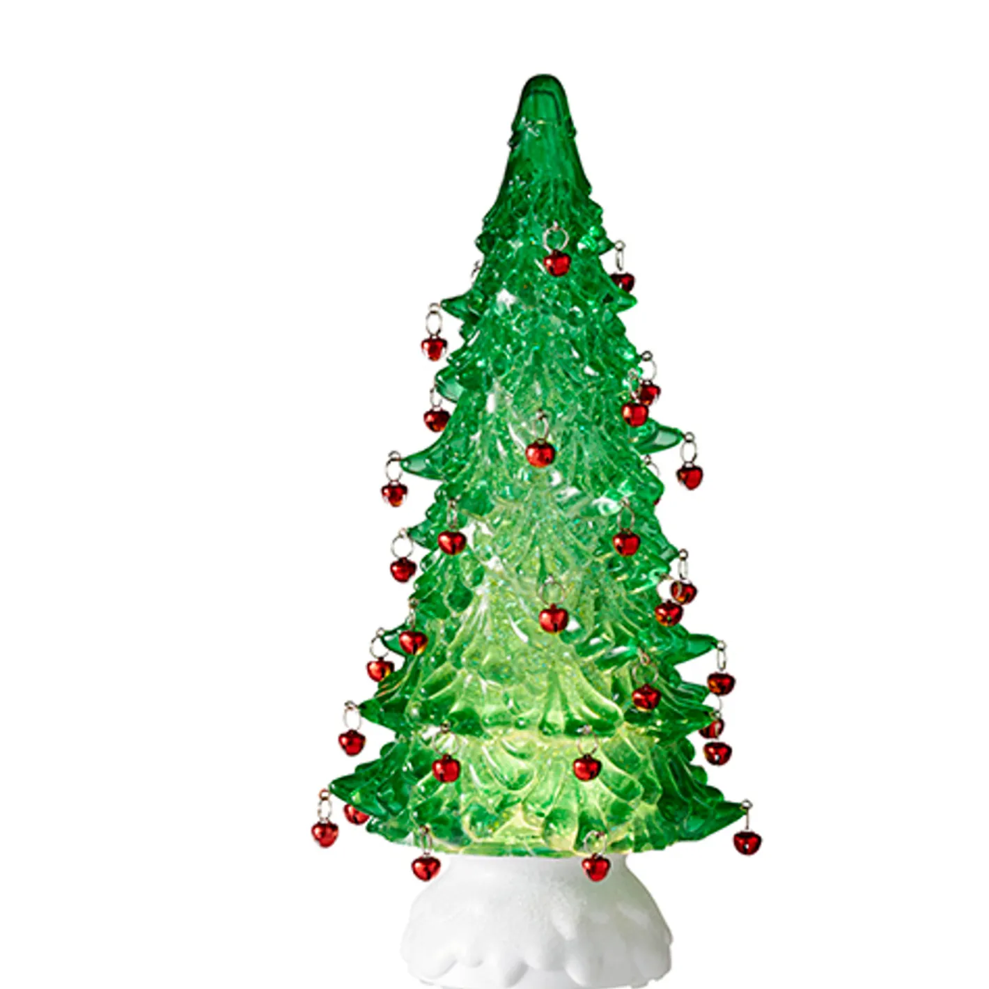 Raz Imports Raz 12″ Clear or Green Lighted Shimmering Water Globe Tree with Jingle Bells Clearance