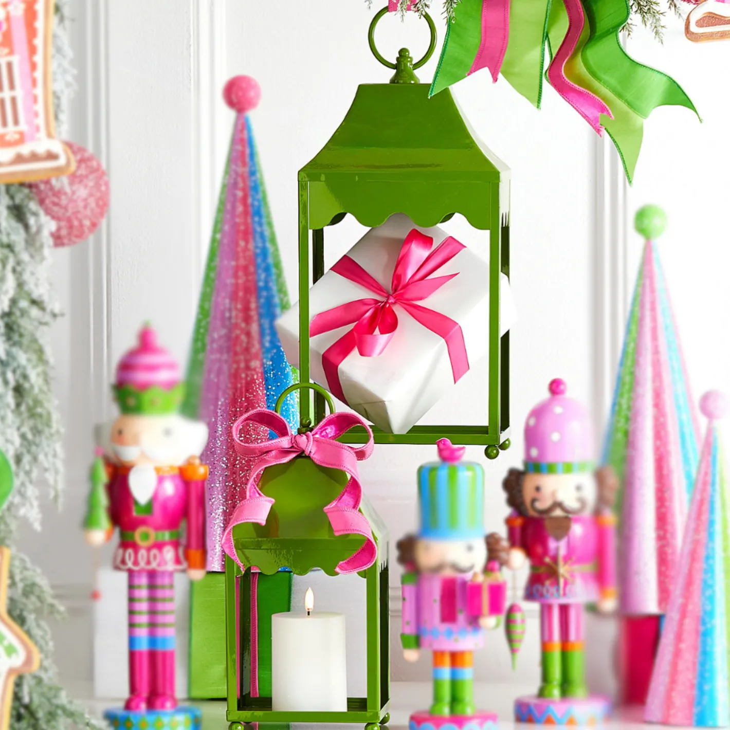 Gorgeous green lanterns have an adorable scalloped edge that are sure to look fabulous with battery operated candles or your favorite Christmas figures! Each sold individually. Made by Raz Imports. Made of iron. Dimensions: 6″ L X 4.5″ W X 13.5″ H or 8″ L X 6″ W X 18″ H.