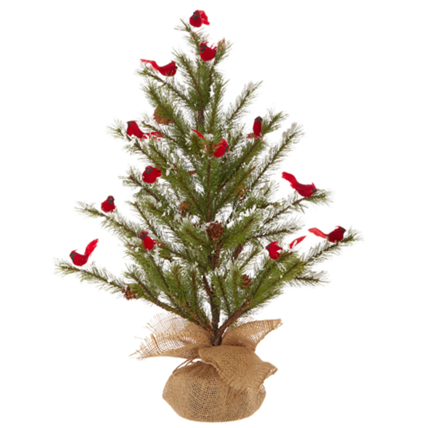 Raz Imports Raz 14.25″ or 16″ Tree with Cardinals in Burlap Bag Christmas Decoration Clearance