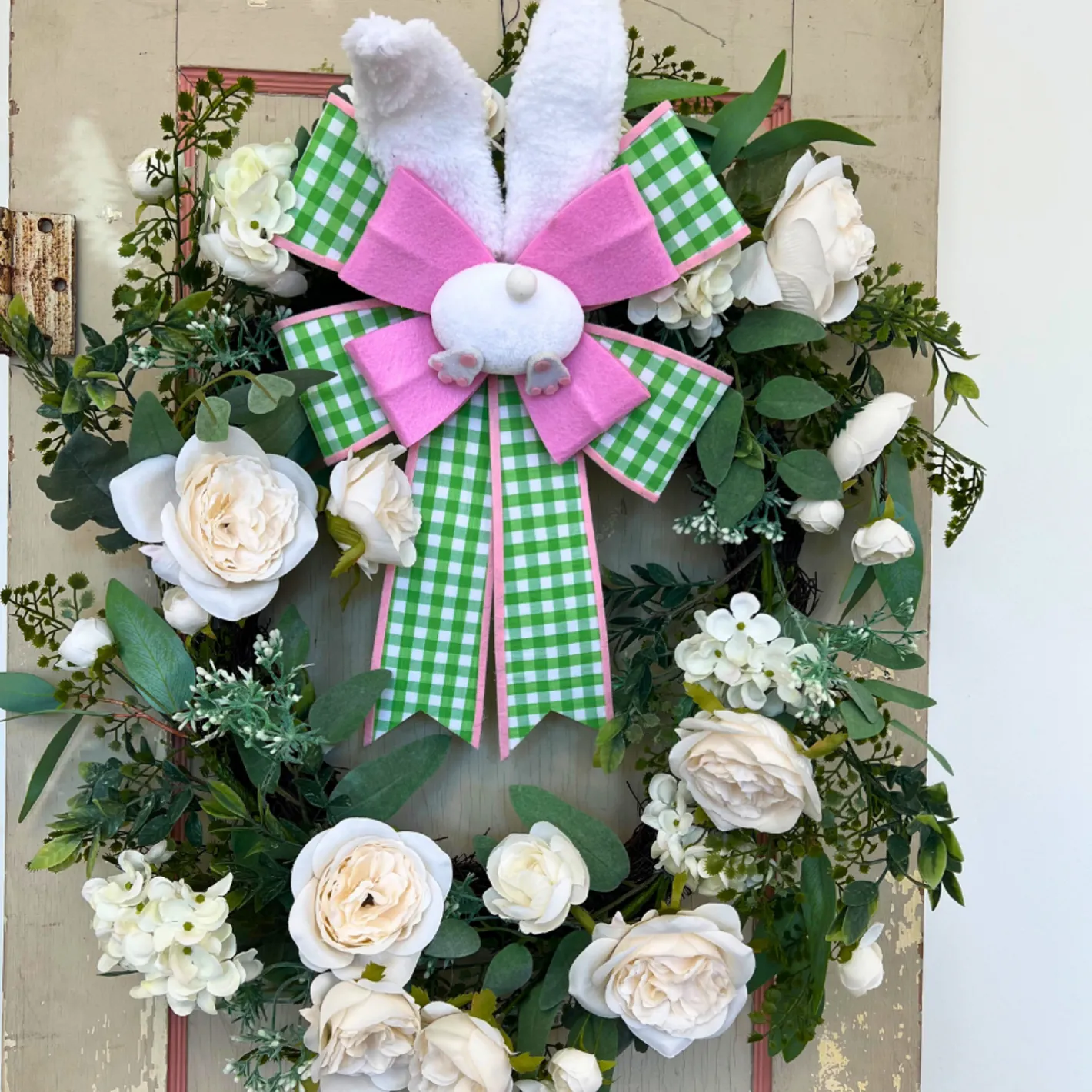 Decorate the center of your favorite wreath or add to these adorable bow to your door this Easter! Each one is a fun colorful check with tall bunny ears and a cut as can be bunny booty in the center! Sold individually. Made by Raz Imports. Made of Polyester, Foam, Metal and Paper. Dimensions: 10.5″L X 3″W X 19″H.