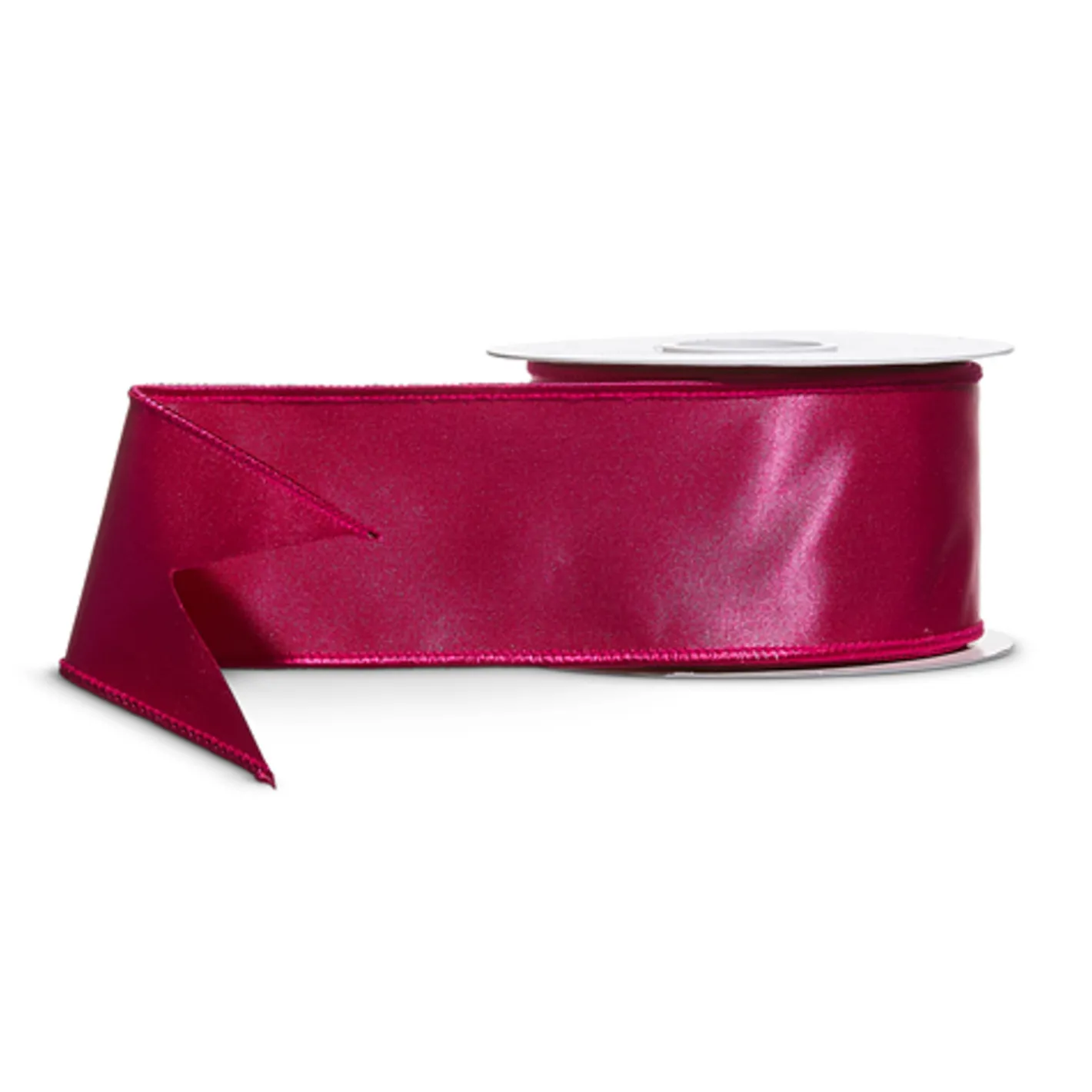 Shiny dark pink ribbon is sure to make a statement this Christmas! It is made with fuchsia pink and has a wired edge to hold it’s shape when tied into bows and loops! Made by Raz Imports. Made of polyester. Dimensions: 2.5″ x 10 yards.