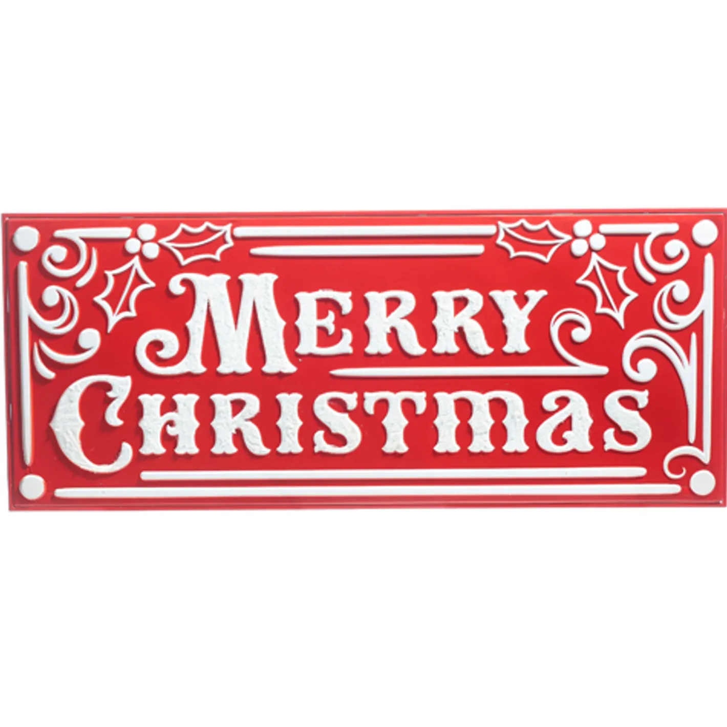 Have yourself, a merry little Christmas and decorate with this pretty bright red sign with holly leaves, stripes, and a Christmas sentiment! Made by Raz Imports. Made of iron. Dimensions: 27.75″ L X 0.75″ W X 11.5″ H.