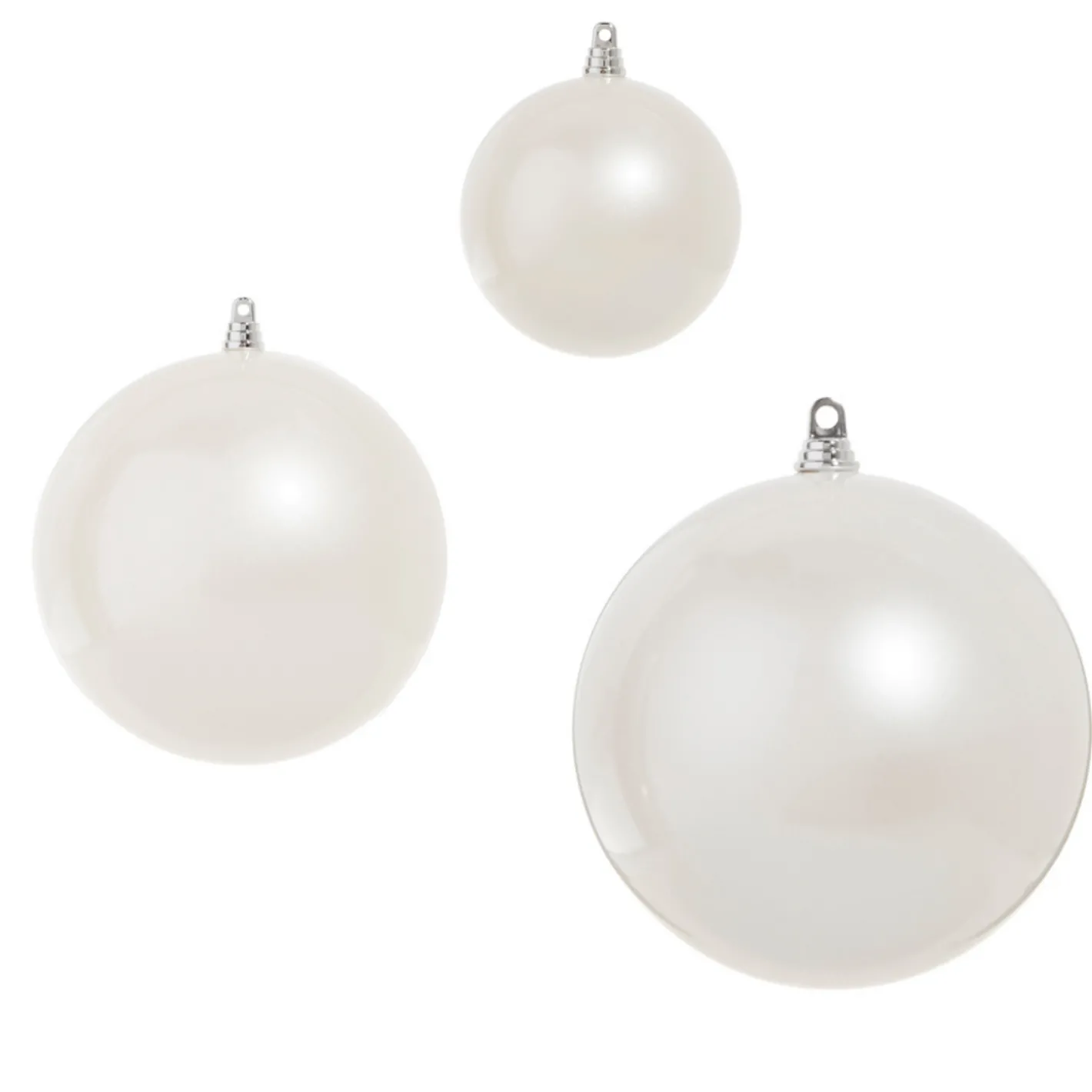 These stunning pearlescent Christmas ball ornaments come in all different sizes that are perfect to add to your wreaths, garlands, or tree! Ornaments sold individually. Made by Raz Imports. Made of plastic. Dimensions: 4″, 6″, or 10″. Item #: 4314912, 4314913, or 4314914