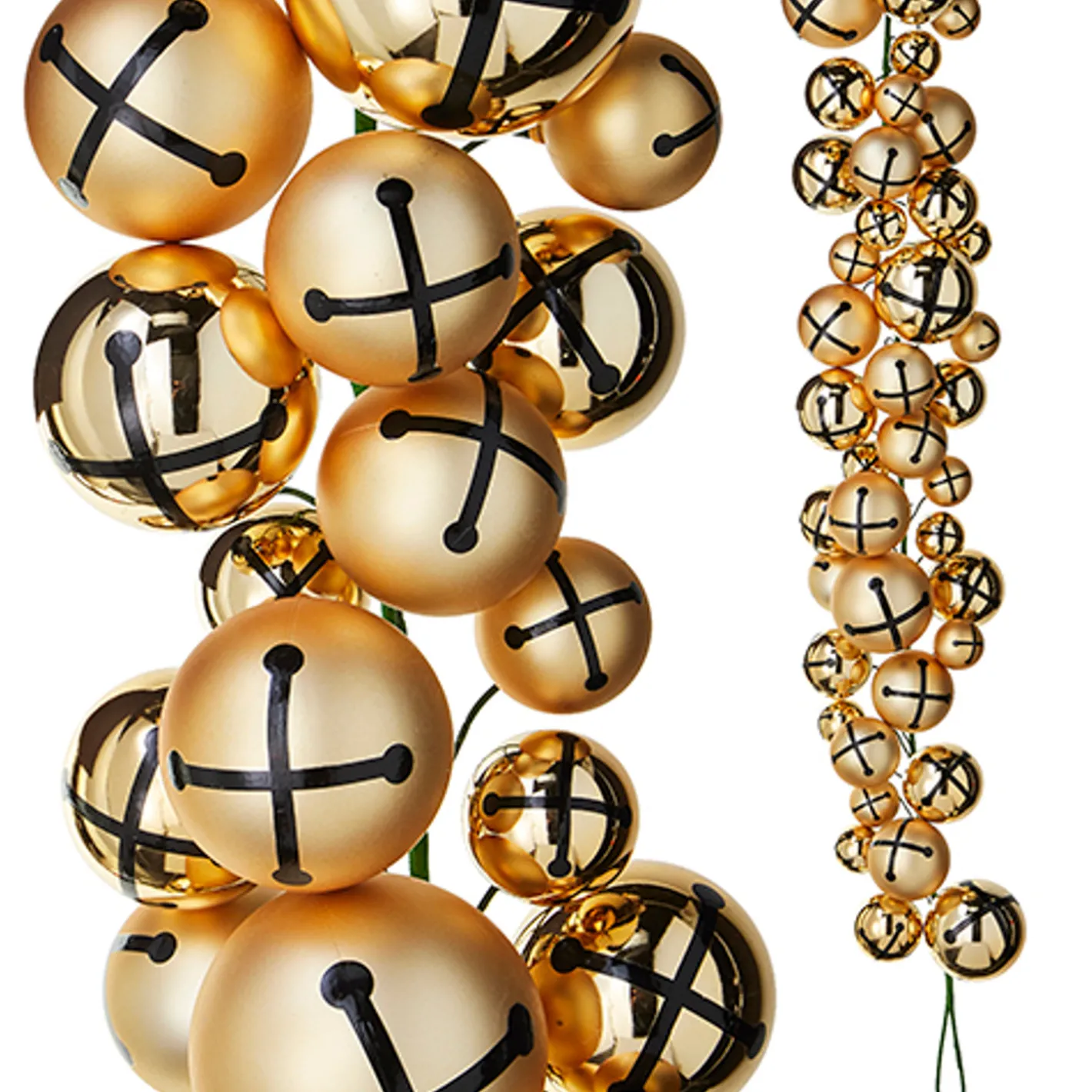 Jingle all the way this holiday season! This unique garland features gold ball ornaments with a jingle bell design! It is perfect to hang along your mantle or a few down your staircase! Made by Raz Imports. Made of plastic. Dimensions: 4′. Item #: G4232802