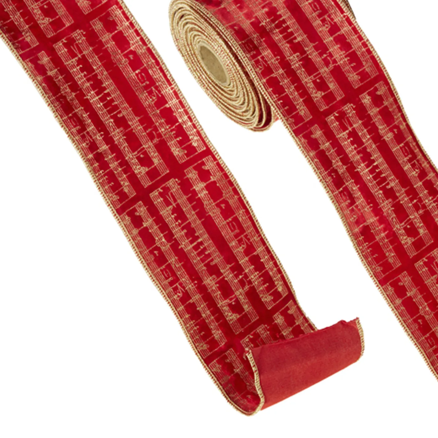 Do you love singing Christmas carols with your family during the holidays? Us too! It features a red velvet ribbon with gold embroidery and gold sheet music printed on the front! Made by Raz Imports. Made of polyester. Dimensions: 4″ x 10 yards. Item #: R4371785