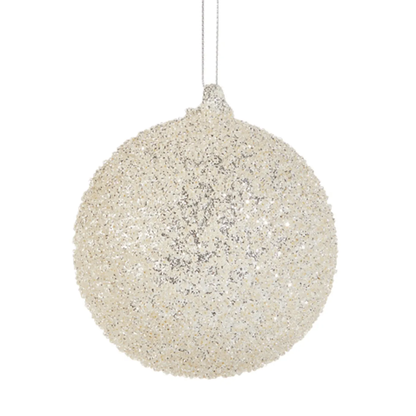 We love a good sparkly moment! Adorn your tree with this adorable silver glittered glass ball ornament! Made by Raz Imports. Made of glass. Dimensions: 4″.