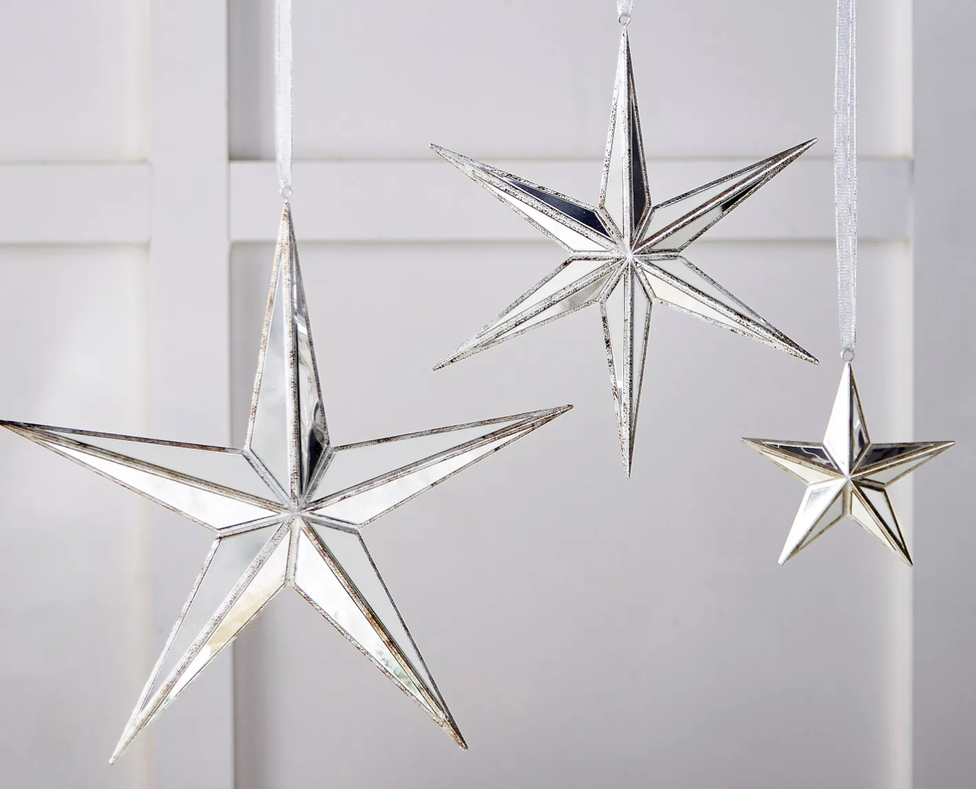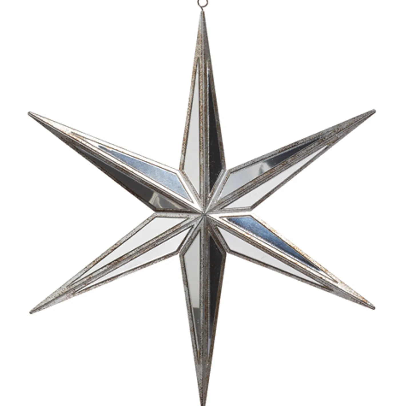 A little more silver will never hurt and these stunning stars will fit into your decor perfectly! Each one has a silver antiqued frame inlaid with mirror tiles in the facets! Choose a small, medium, or large star, or mix n match! Each sold individually. Made by Raz Imports. Made of plastic.