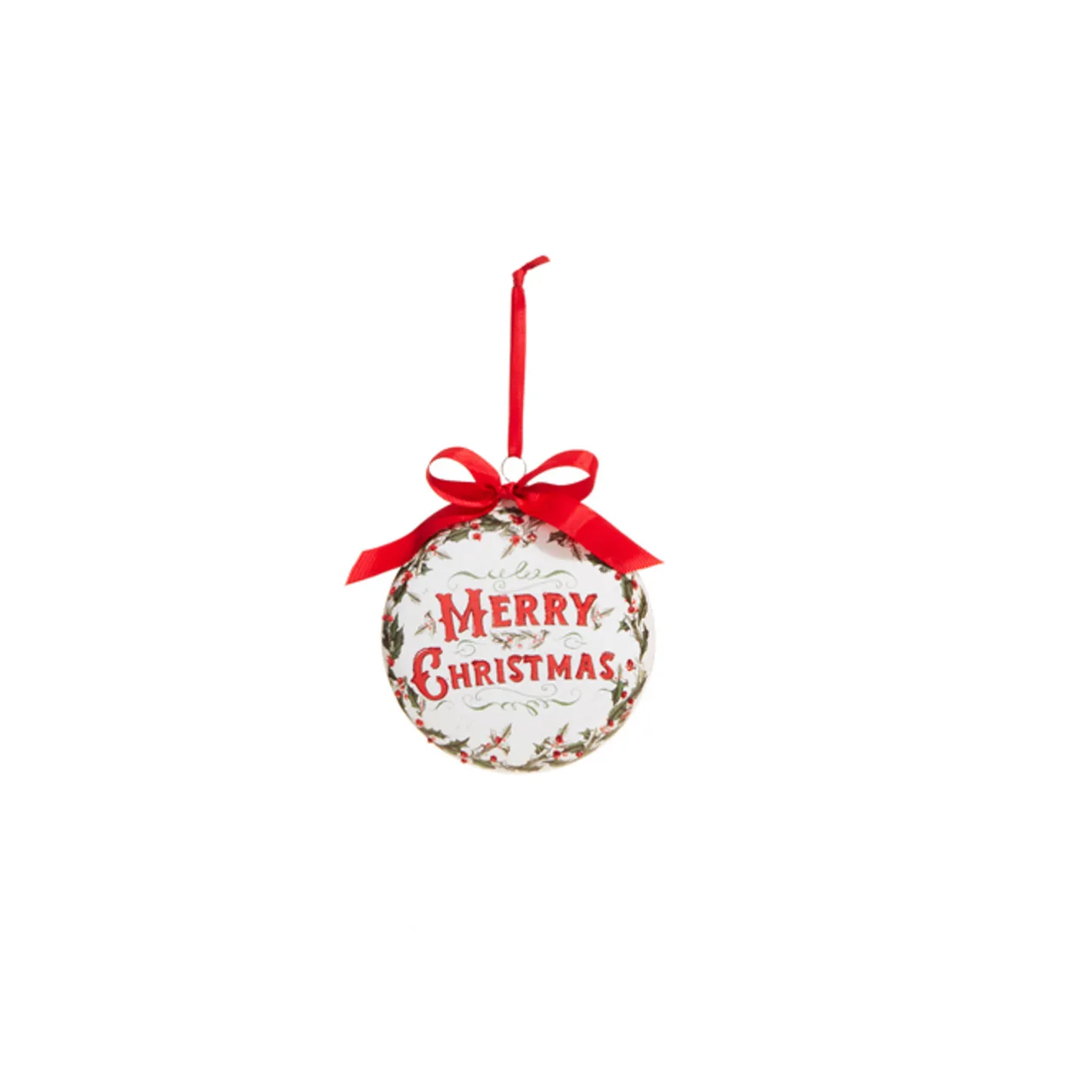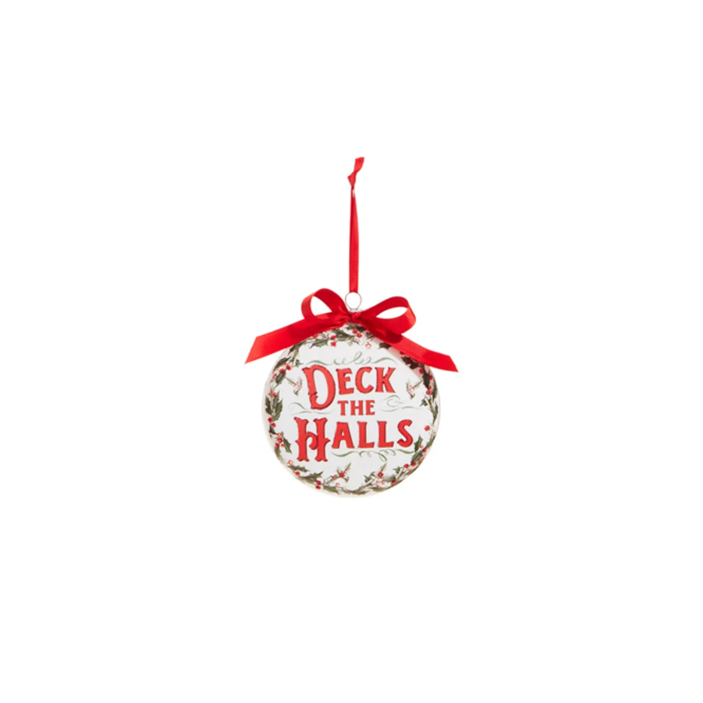 Add some Christmas cheer to your home with these cute as can be ornaments! Each one features a glass disc with a frame of holly leaves and berries and a holiday sentiment in bold red lettering! Each sold individually OR as a set of 2. Made by Raz Imports. Made of glass. Dimensions: 5″L X 1.5″W X 5″H.