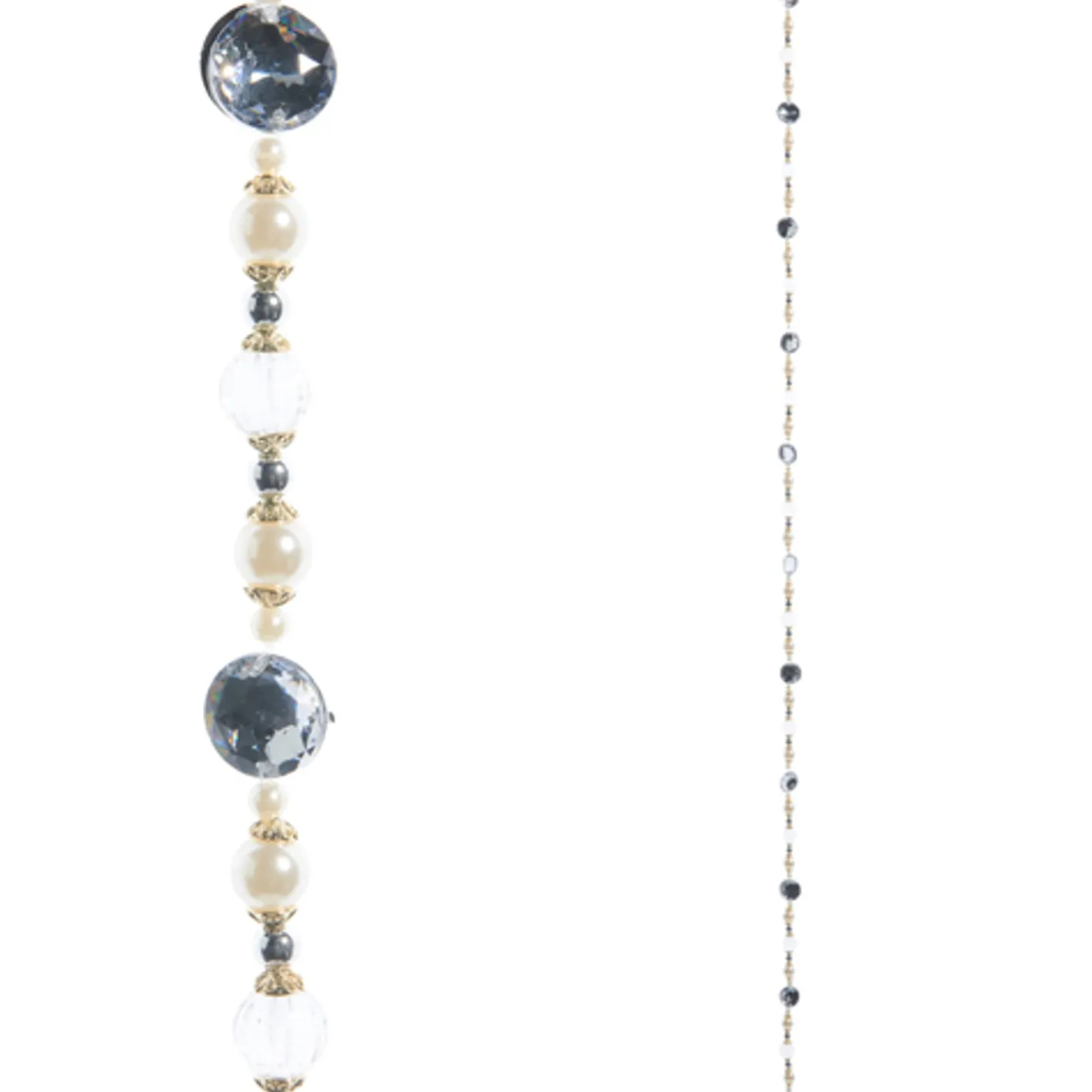 Elegant beads and sparkling jewels are exactly what your tree is missing this holiday! Wrap this garland around your tree or use in a wreath! Made by Raz Imports. Made of plastic. Dimensions: 5′.