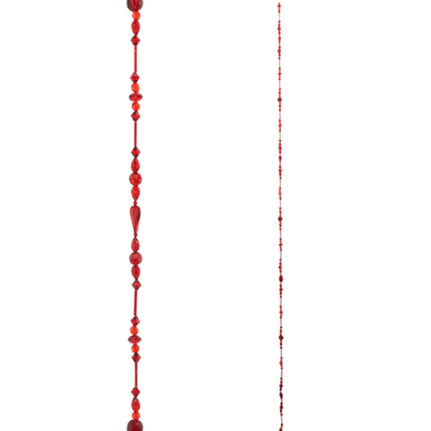 A beautiful strand of deep red beads of different shapes and sizes with stunning facets make up this Christmas tree garland! Accent the tips of your tree or along the mantle on your garland! Made by Raz Imports. Made by Acrylic. Dimensions: 6′.