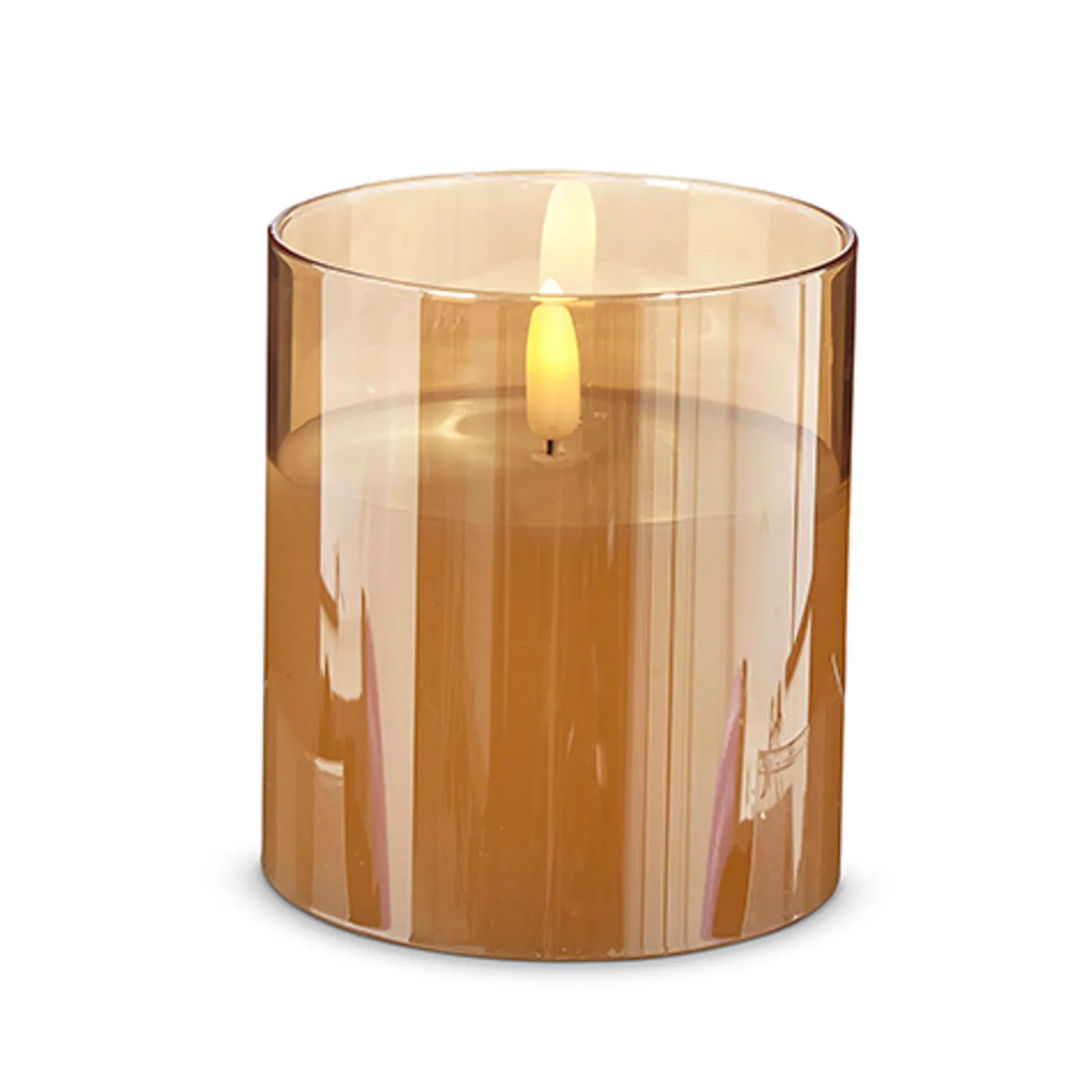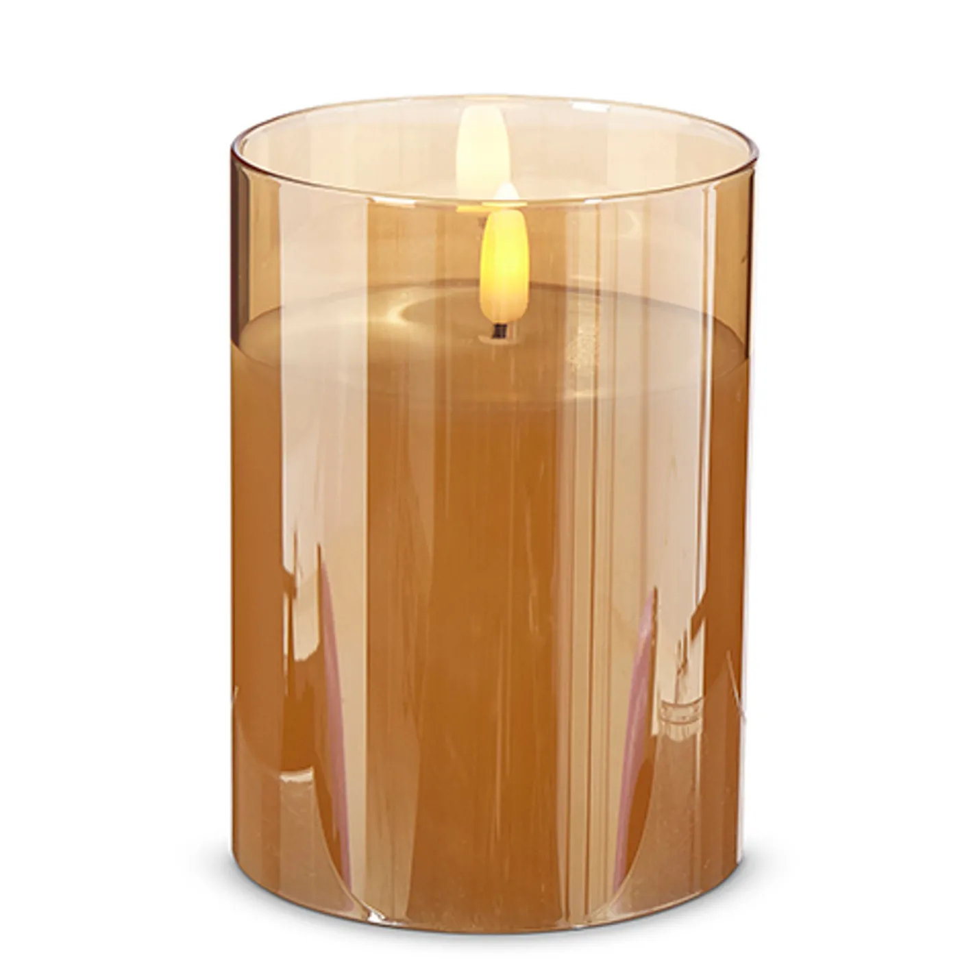 Get the stunning look of candle light without lighting any actual candles! Each one features an amber-gold glass container with an ivory wax candle inside topped with a small flickering light that resembles real fire! Made by Raz Imports. Made of glass and wax. Dimensions: 3.5″ x 4″, 3.5″ x 5″, 3.5″ x 6″, 2″x6″, 2″x4″, 3″x6″, or 3″x4″,