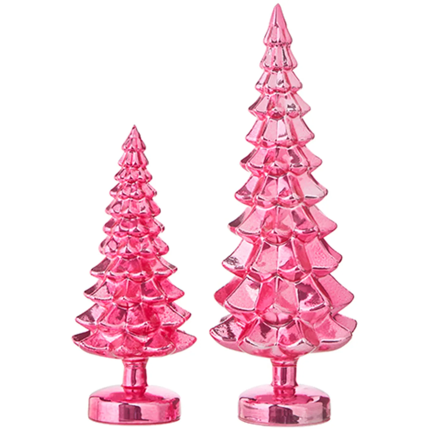 These gorgeous trees are sure to look amazing on your mantle! The stunning pink color is sure to make a statement this holiday season! Sold as a set of 2. Made by Raz Imports. Made of glass. Dimensions: tallest tree is 15.25″ tall. Item #: 4222938