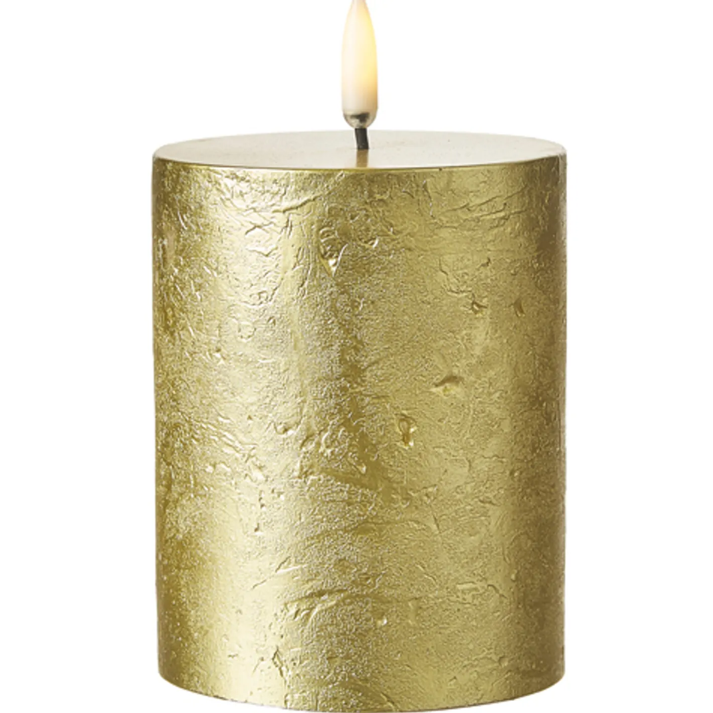 Raz Imports Uyuni 3″ x 5″ or 7″ Gold Texture Flat Top Flicker Flame Pillar Candle Hot
