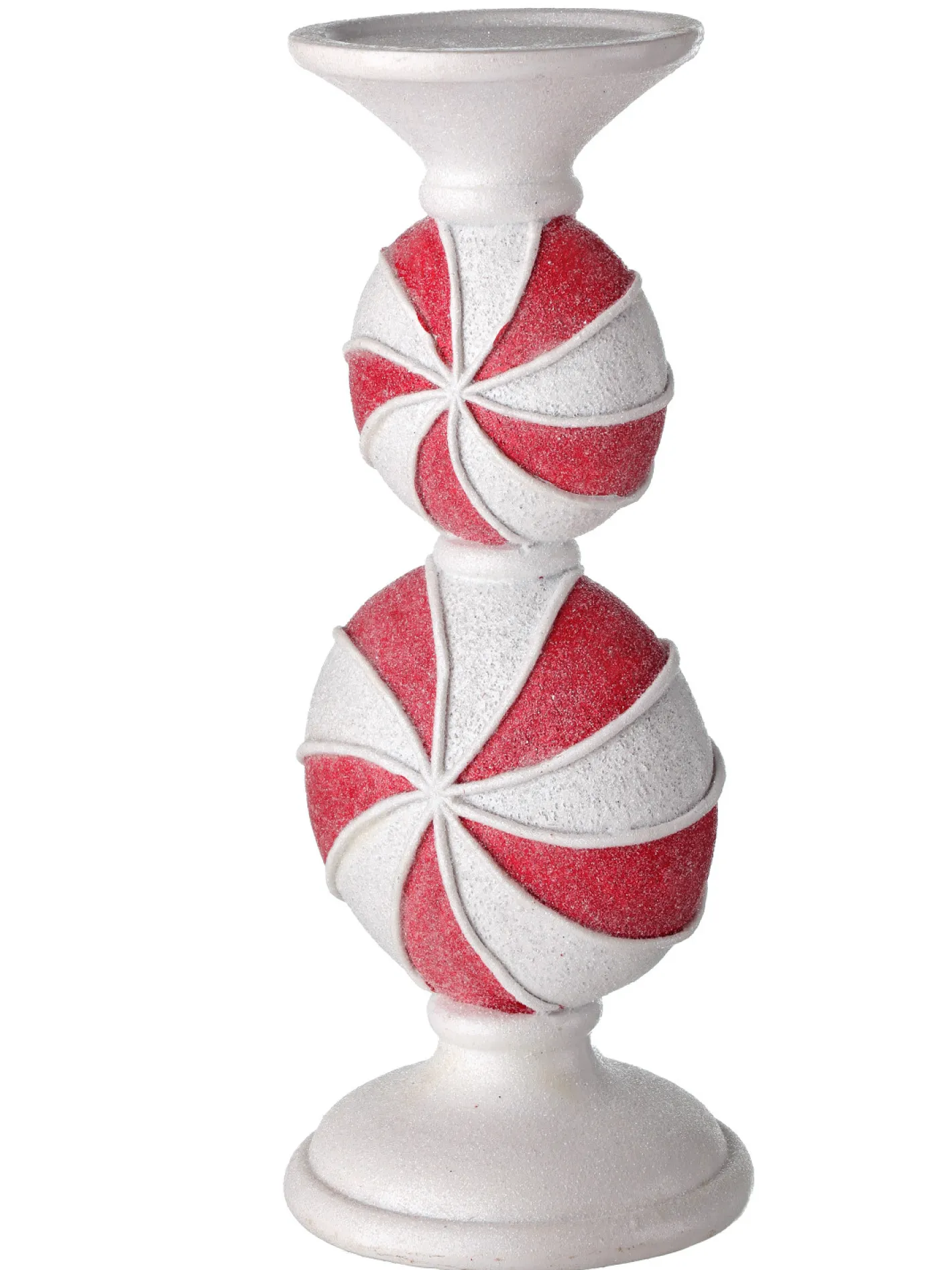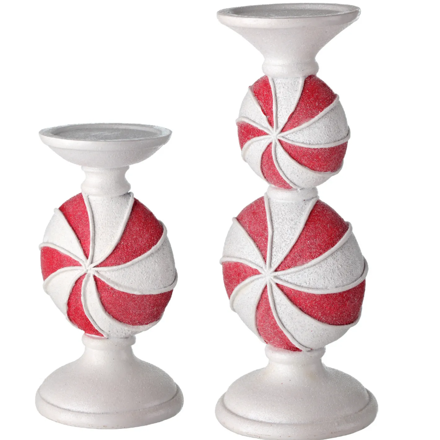 Add a touch of peppermint to your mantle display with these adorably sweet pillar candle holders! These are great to use with battery operated pillar candles or even as risers for your favorite ornament or small figure! Each sold individually. Candle sold separately. Made by Regency International. Made of resin. Dimensions: 9″ or 11.5″. Item #: MTX66252 or MTX66253