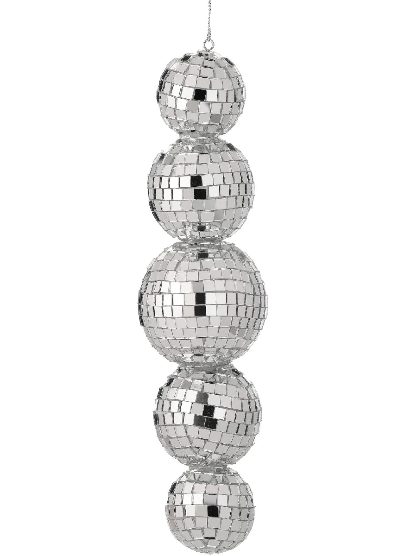 What’s better than a single disco ball? A multi disco ball!! Made up of tons of tiny silver mirrors, this Christmas ornament is sure to turn heads this years holiday party! Made by Regency International. Made of plastic. Dimensions: 9″.