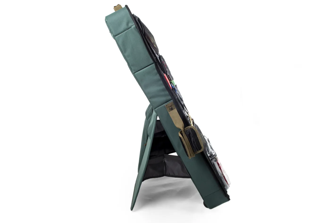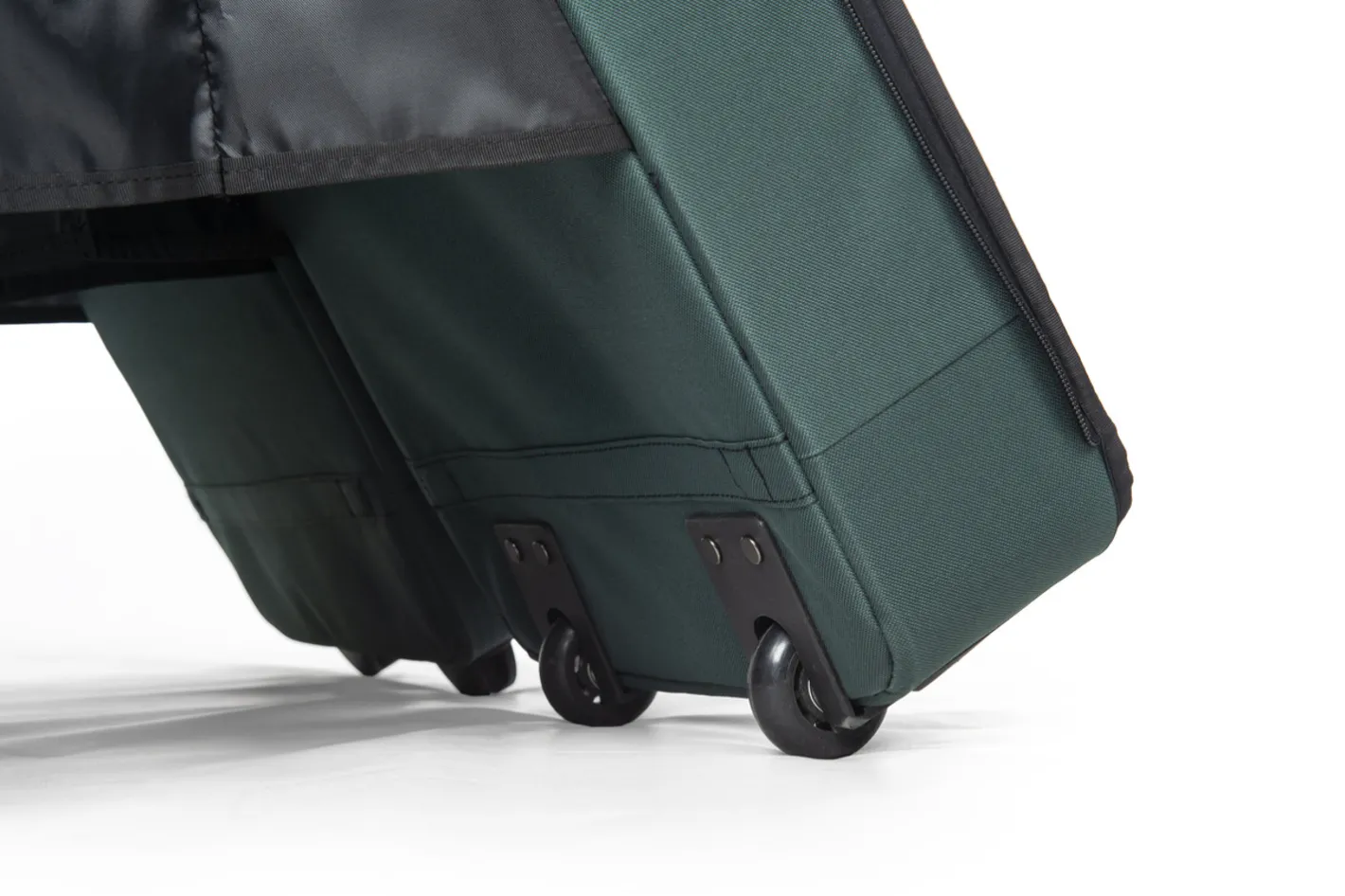 Holds up to 14 (40″ tall) wrapping paper rolls. Fits up to 6 XL rolls of Ribbon. Four zippered pockets for gift wrap accessories. Exterior front pocket stores gift bags. Kickstand legs for standing support. Durable wheels for easy transportation. Great for holiday gift wrap, scrapbooking, crafting, or quilting.
