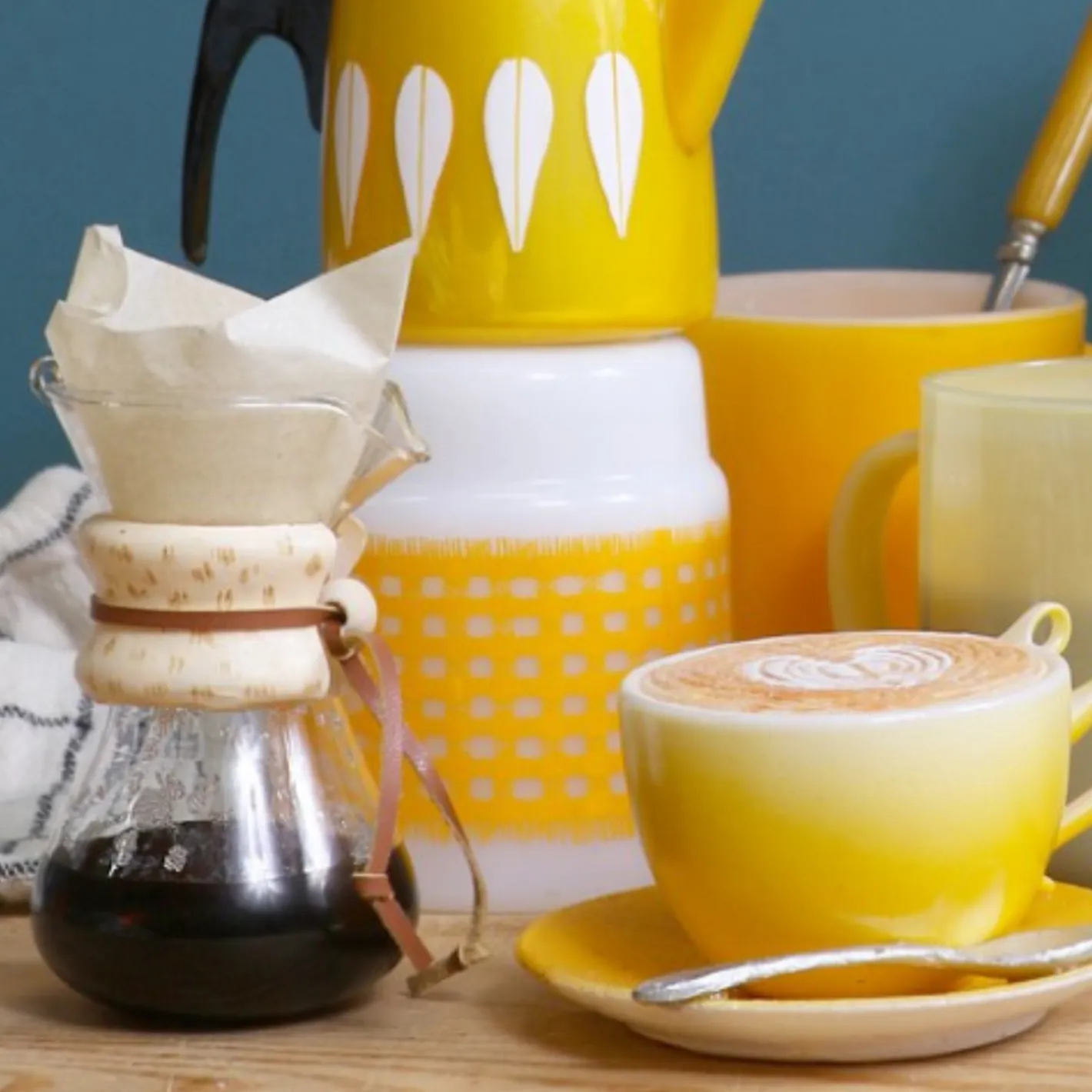 Calling all coffee lovers! This delicious ornament makes us want (another) cup of coffee! It features a glass pour over container filled with brown liquid, the wooden collar and leather accent with a paper strainer at the top! This would make a lovely gift for your favorite barista! Made by Cody Foster. Made of glass. Dimensions: 3″L x 2.25″W x 4.5″H.