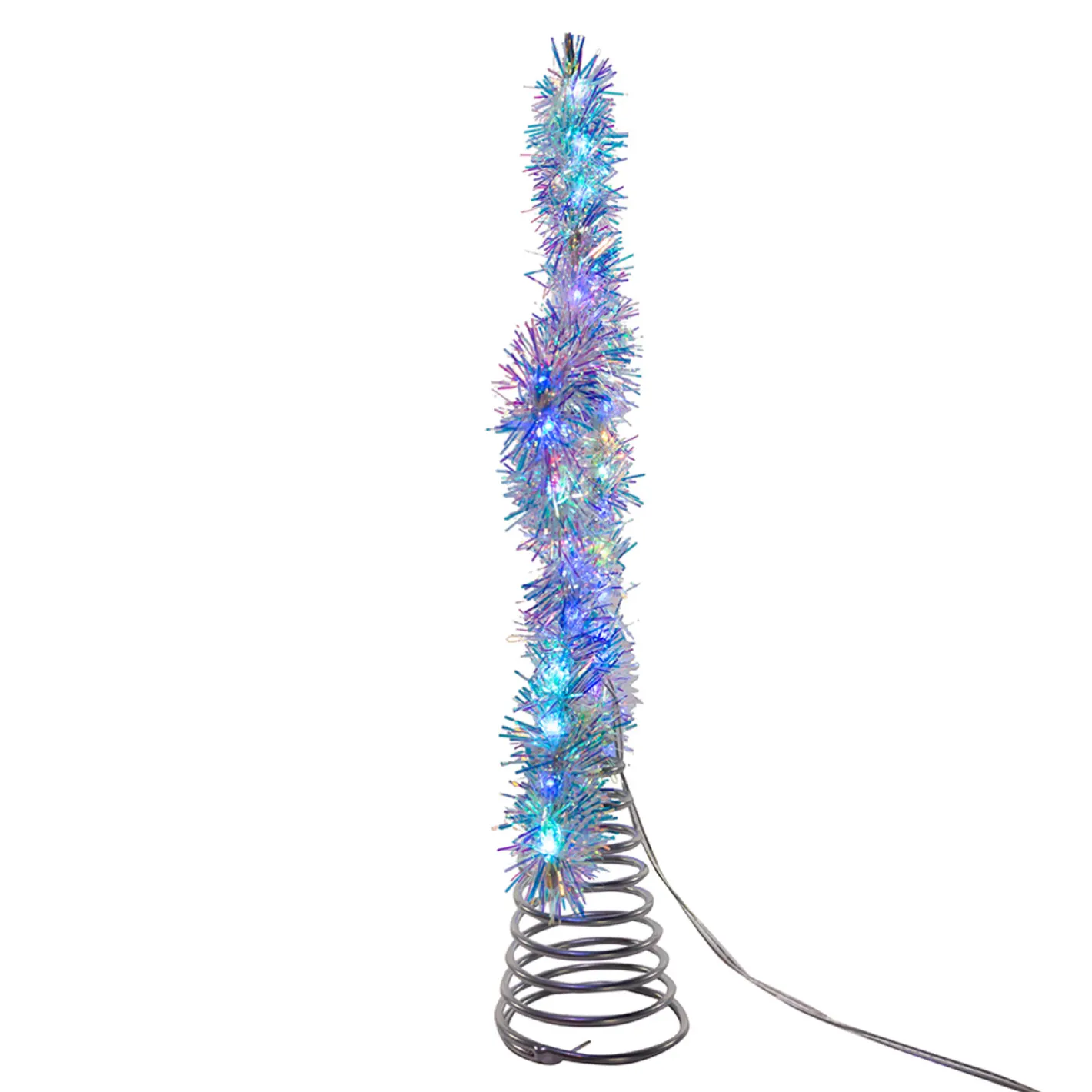 This adorable topper is sure to be the actual shining star at Christmas this year! It features a metal star covered in shiny silver tinsel and lined with multicolor lights! Plug in. Indoor/outdoor use. Twinkle feature. Made by Kurt Adler. Made of metal. Dimensions: 12.2″ x 10.5″.