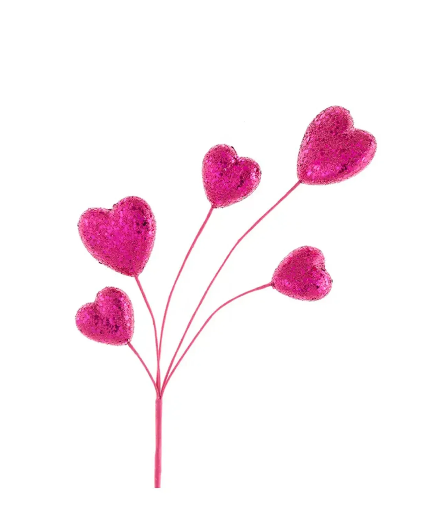 Add a little love to your Christmas tree with this adorable spray! It features bold and bright pink glittered hearts on a pink paper covered wire! Perfect to use in any pink themed trees or for Valentines Day Decor! Made by Kurt Adler. Made of polyester, paper, and iron. Dimensions: 19″.