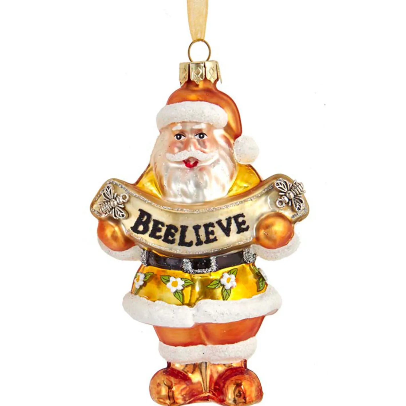 Kurt Adler 4.5″ Gold and White Santa with Bee Banner Glass Christmas Ornament T2707 Online