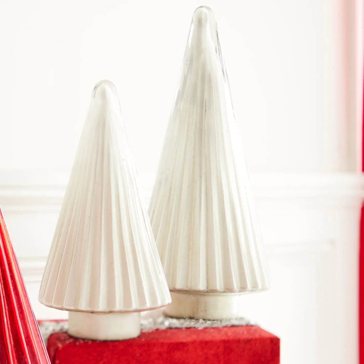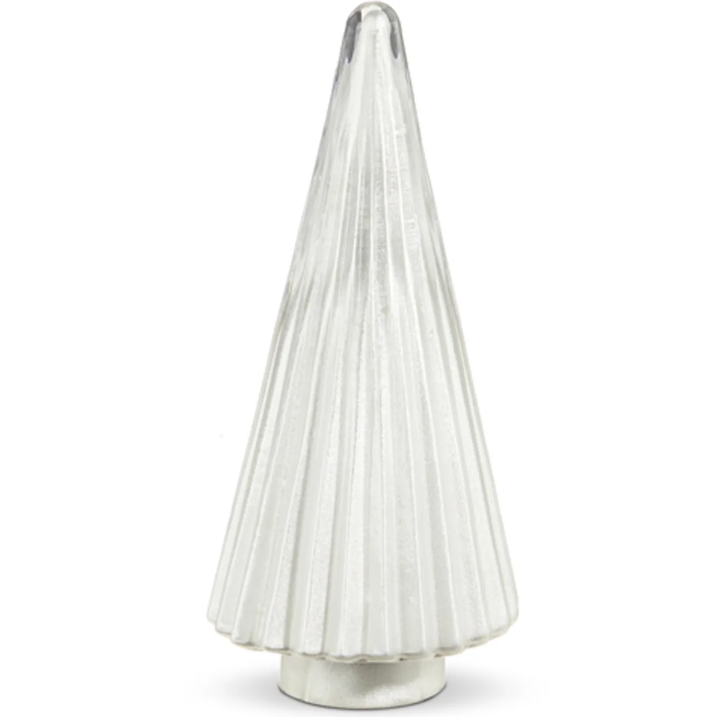 Needing something sparkly this holiday to add to your mantle?? Snag these trees! Each one is made of silver glass with a beautiful ribbed effect! Each sold individually. Choose 11.75″ or 15″. Made by Raz Imports. Made by Raz Imports. Made of glass. Dimensions: 11.75″: 6.25″ D X 11.75″ H. 15″: 7″ D X 15″ H.