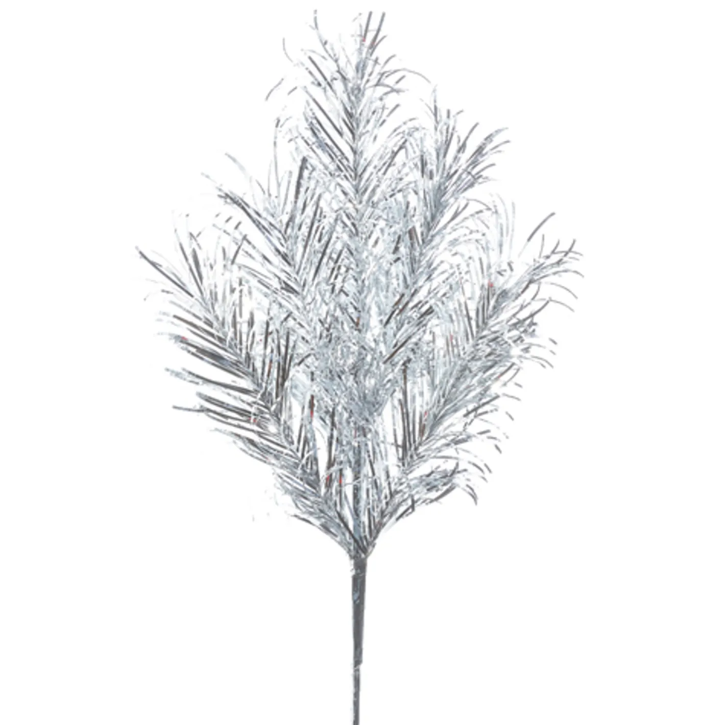 We love vintage Christmas decor! This spray is made of shimmering silver tinsel! Perfect to add in your trees, wreaths, and garlands for a fun vintage flair! Made by Raz Imports. Made of plastic. Dimensions: 28″. Item #: F4302403