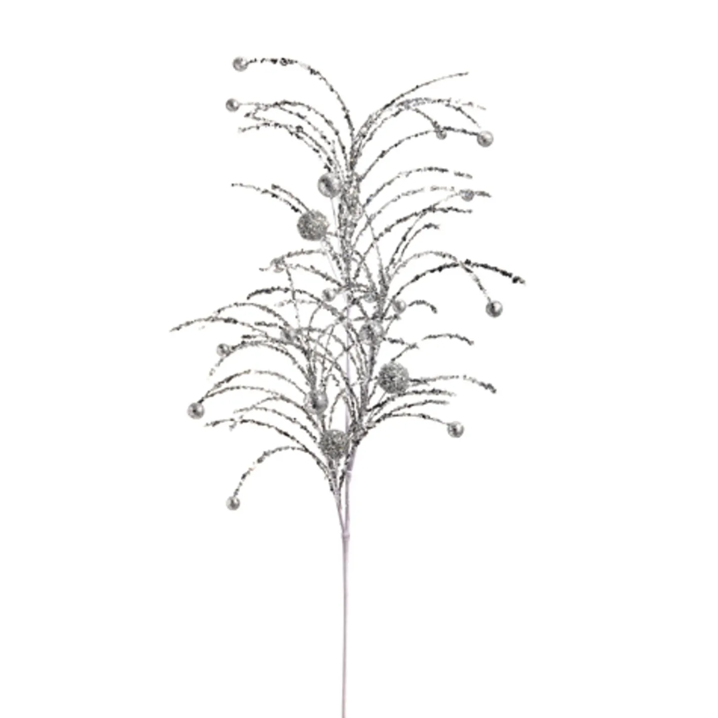 Add a burst of fun to your Christmas tree this holiday season! Choose a shimmering silver or glittering green Christmas tree spray. Each one features small balls on the ends of glittered stems. Perfect to make your tree stand out or add some drama to your favorite wreath. Each sold individually. Made by Raz Imports. Made of plastic and foam. Dimensions: 42″.