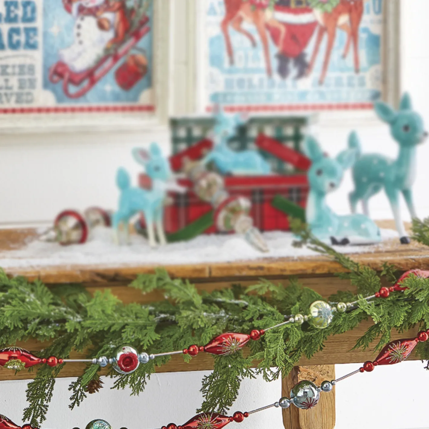 This garland is going to give a perfect retro touch! It features round and finial shapes with reflectors in the center of each one! Each ornament is different colors and accented with glitter! Made by Raz Imports. Made of glass. Dimensions: 6′. Item #: G4122805