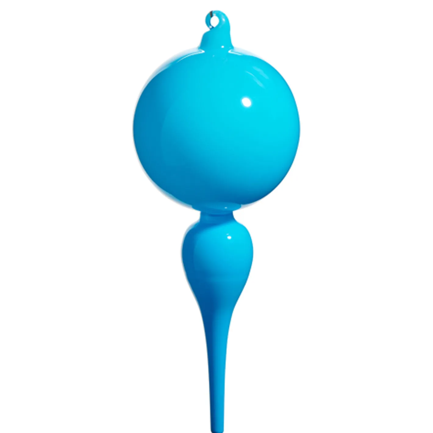 Add a bold pop of color to your Christmas decor with these vibrant ocean blue finial ornaments! Available in 8″ or 10″ sizes, each one features a sleek glass design in a stunning shade of blue that’s perfect for adding contrast to your tree, wreath, or garland. Each sold individually. Made by Raz Imports. Made of glass. Dimensions: 3″ D X 8″ H or 3″ D X 10″ H.
