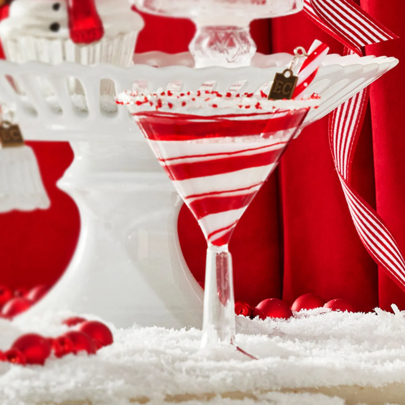 Time to celebrate Christmas style! Holiday themed drinks are the perfect way to get into the Christmas spirit! This features a martini glass with red swirled stripes filled with white liquid and rimmed with crushed peppermint! Made by Raz Imports. Made of glass. Dimensions: 4″ L X 3.5″ W X 6″ H. Item #: 4353119